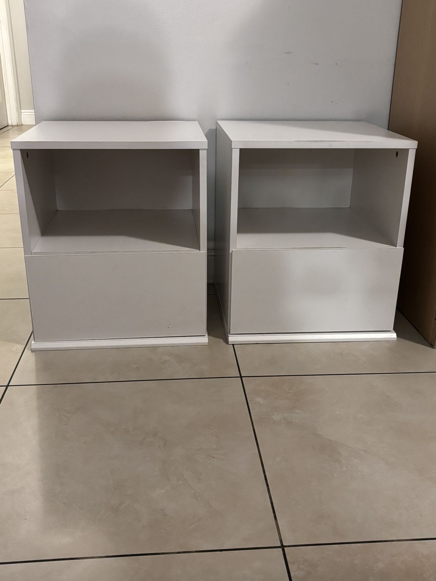Set of 2 Ikea nightstands in excellent condition Dimensions: 16 3/4 W 19 1/4 H 15 3/4 D.
