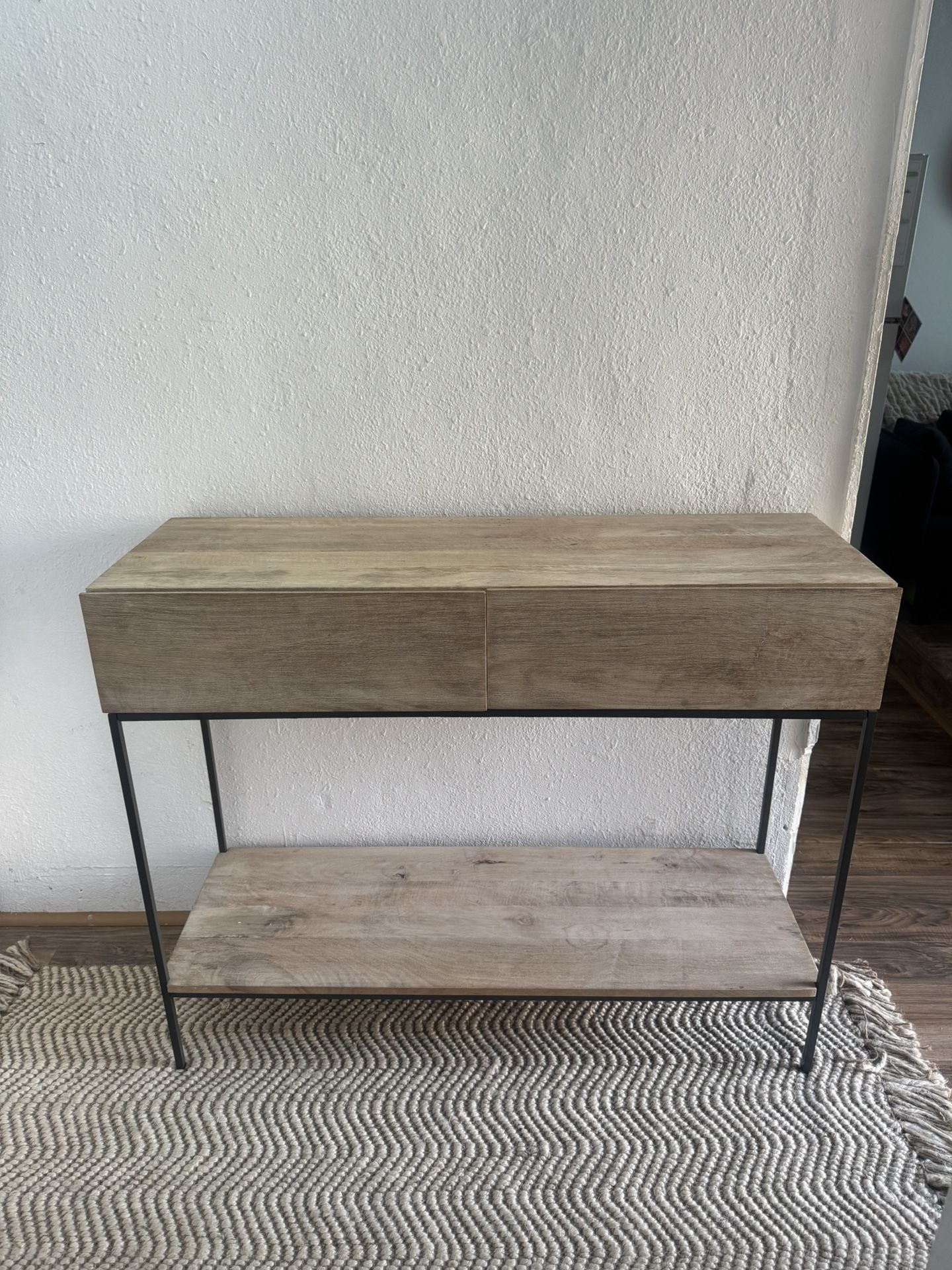 Gently used Williams Sonoma Industrial Storage Console in great condition. Solid, high-quality piece with warm wood finish and black metal frame. Includes two storage drawers and a lower open shelf. Works well as an entryway table, console, or media piece. Dimensions: 42”W x 16”D x 34”H Condition: Gently used Original retail: $599 Asking $250 obo Message me if interested.