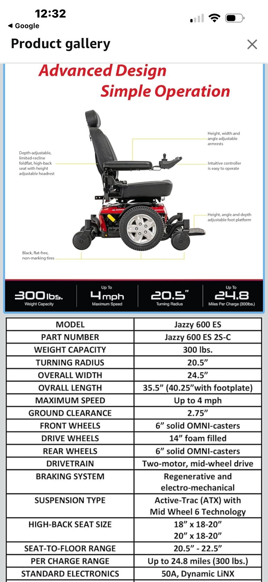 Power Chair J600 Es Red