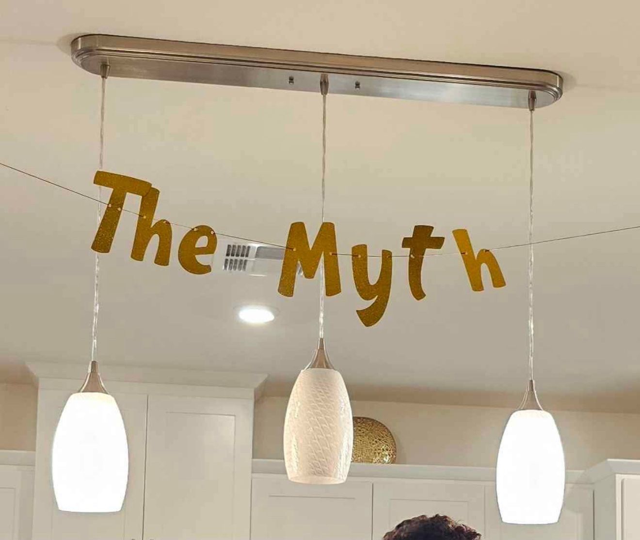 Pendant lighting - silver with frosted glass (white). Base is 36"x5". Pendant length adjustable.