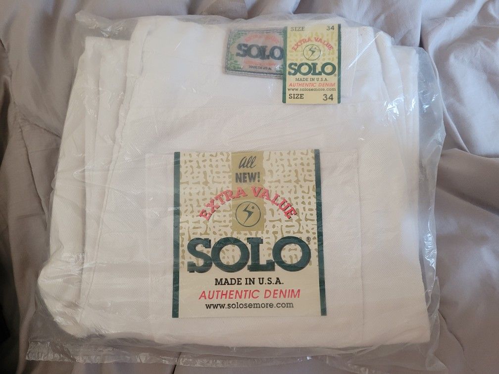 Vintage 90s Solo Semore Jeans Mens 34 Wide Baggy White Denim Brand New Never Worn With Original Tags