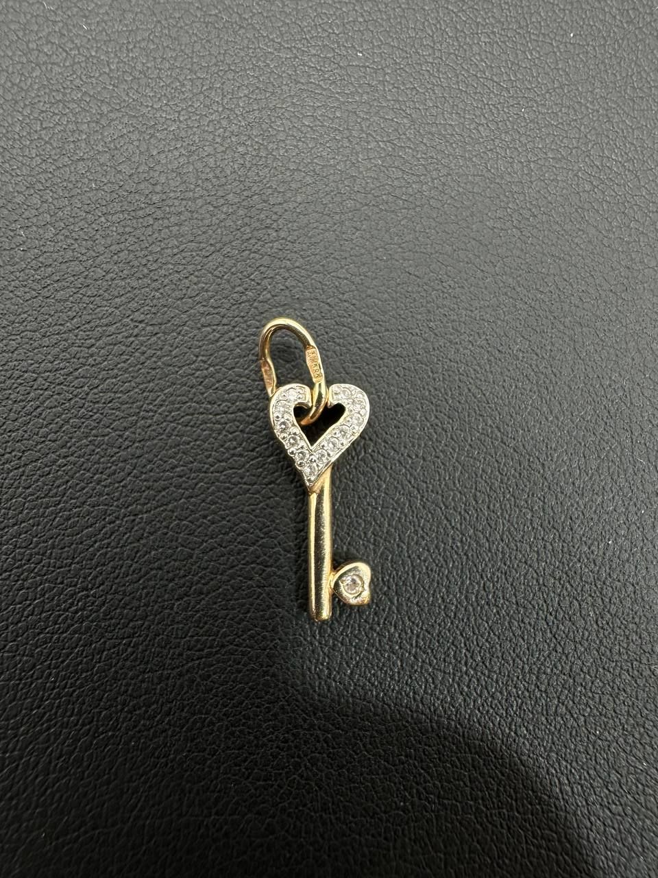 14K Yellow Gold Lucky key pendant CZ stones 1 gram