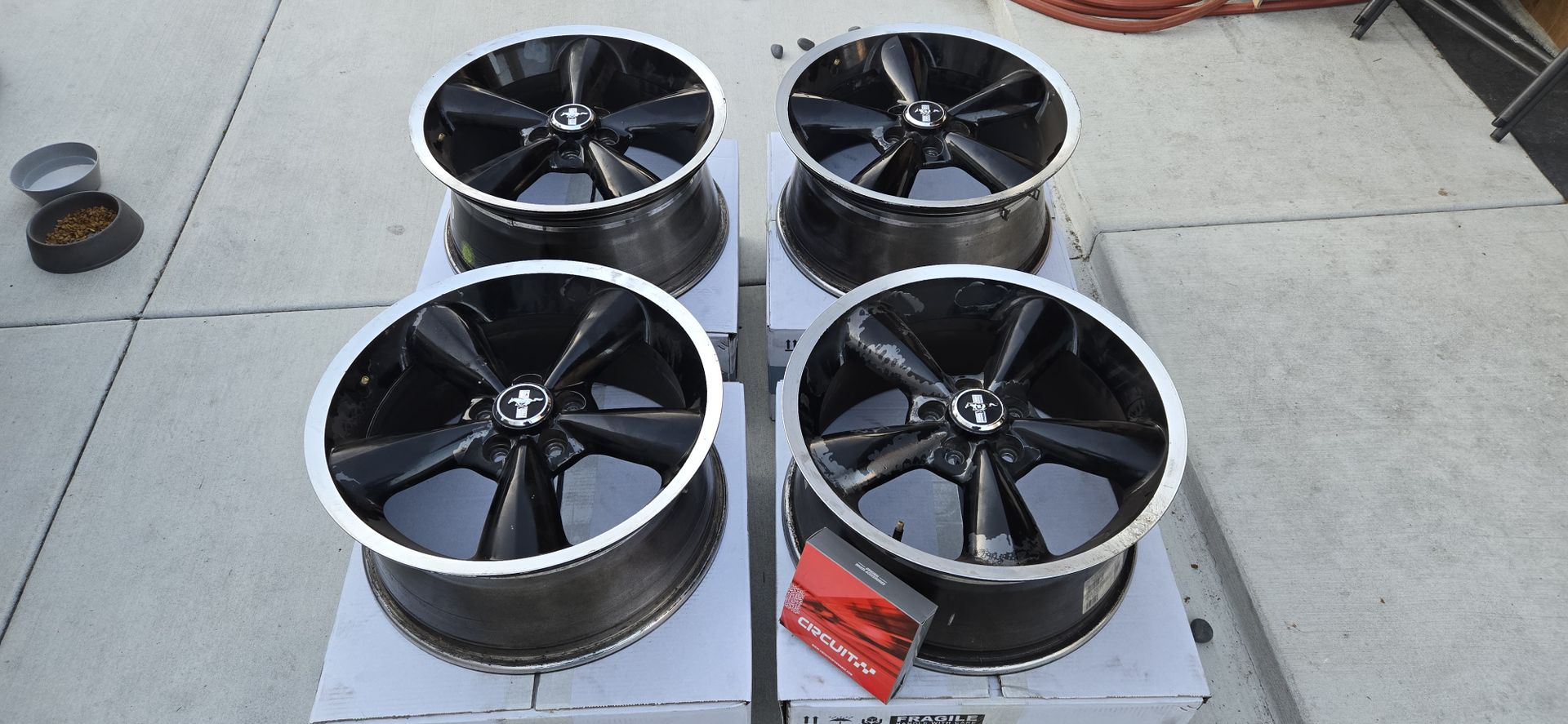 Hey all, selling a good used set of 05-09 Mustang Shelby GT wheels, not perfect clear coat is coming off. Asking $400 obo clearing out my backyard Wheel Specs 18 x 8.5 offset 50mm on all four its a square setup