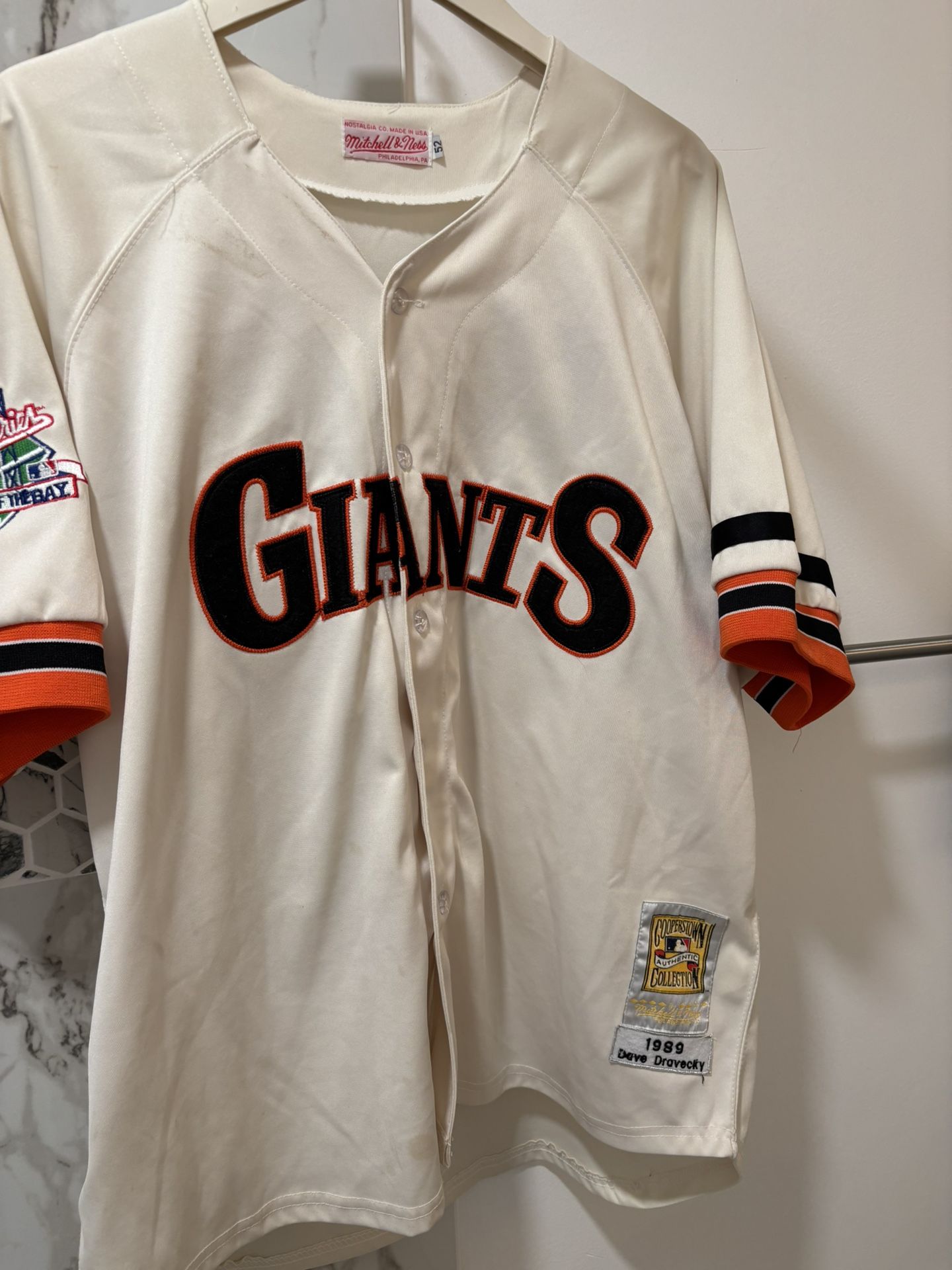 SF Giants, 1989 Mitchell & Ness Cooperstown Collection. Used, Will Clark #22 Jersey, white, adult size 52. Including Dave Dravecky 1998 patch. $ 125. Cash sale only.