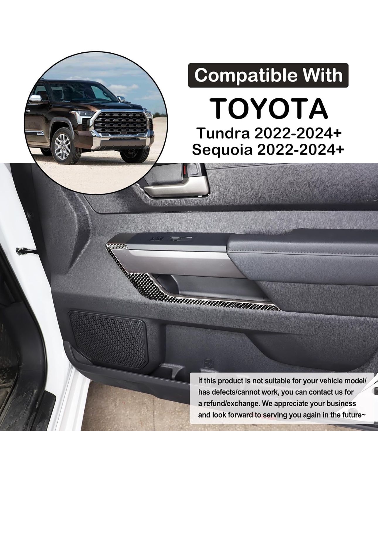 Brand New Inner Door Handle Panel Trim Cover Sticker Toyota Tundra 22-24 Real Carbon Fiber