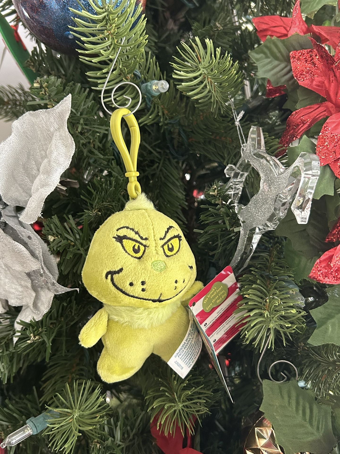 Stuffed Grinch keychain ornament