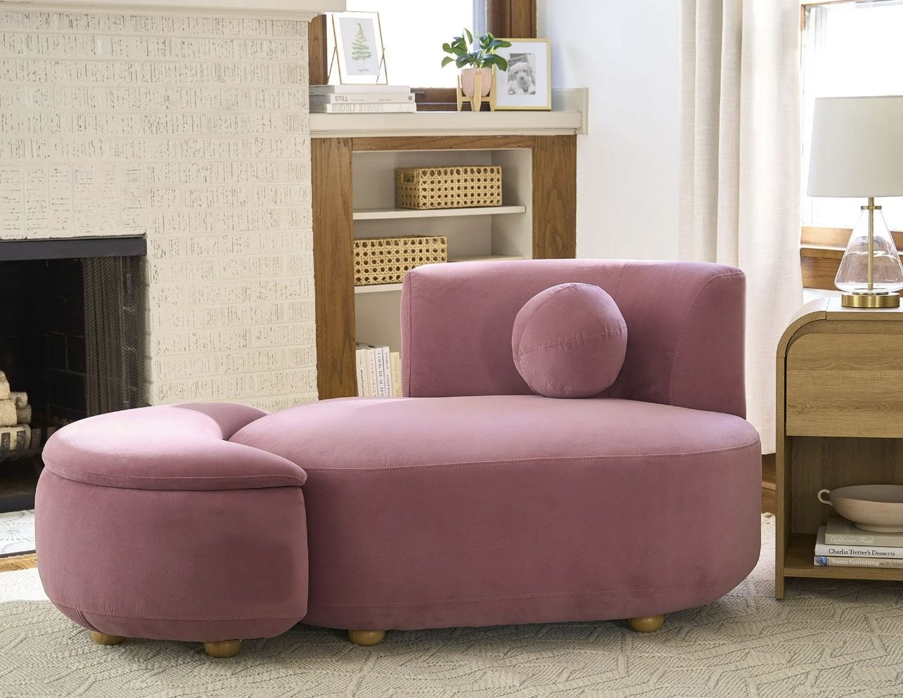 Better Homes & Gardens Juliet Modern Velvet Chaise & Storage Ottoman, Rose