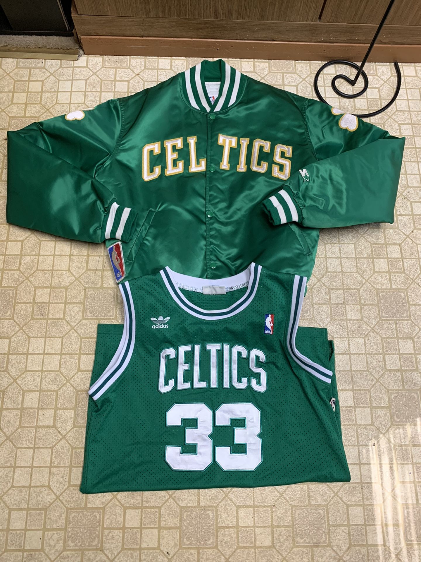 Both just like new Jacket is a men’s Large made by Starter Authentic NBA gear($75) Larry Bird Jersey men’s Medium by Adidas and Hardwood Classics($75) purchase both for ($125)
