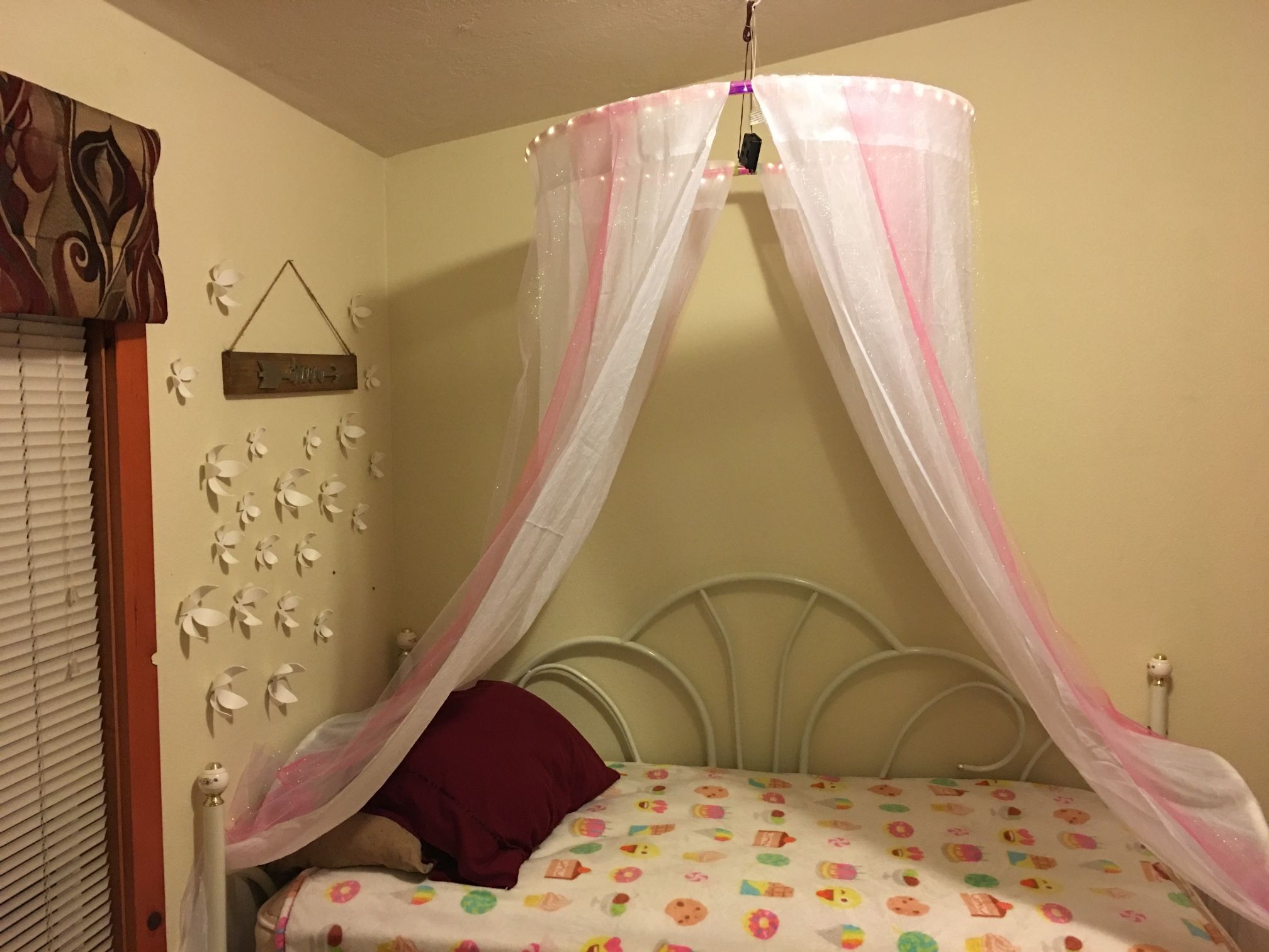 Twin size metal day bed. White in color. Good mattress included.