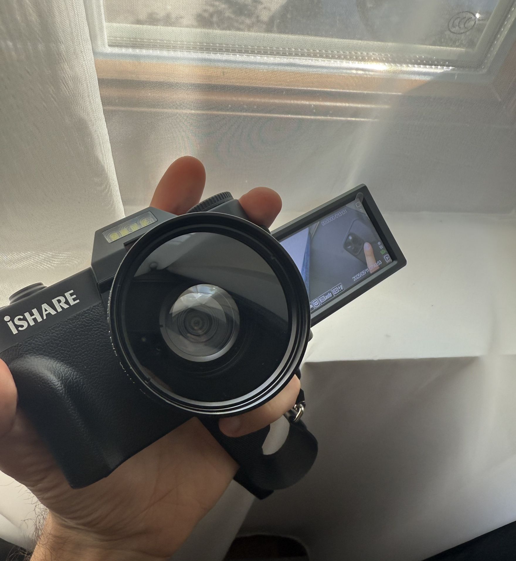 Black Ishare 4K digital camera with 16MP, 2.7” screen, and 1080p video recording #digitalcamera