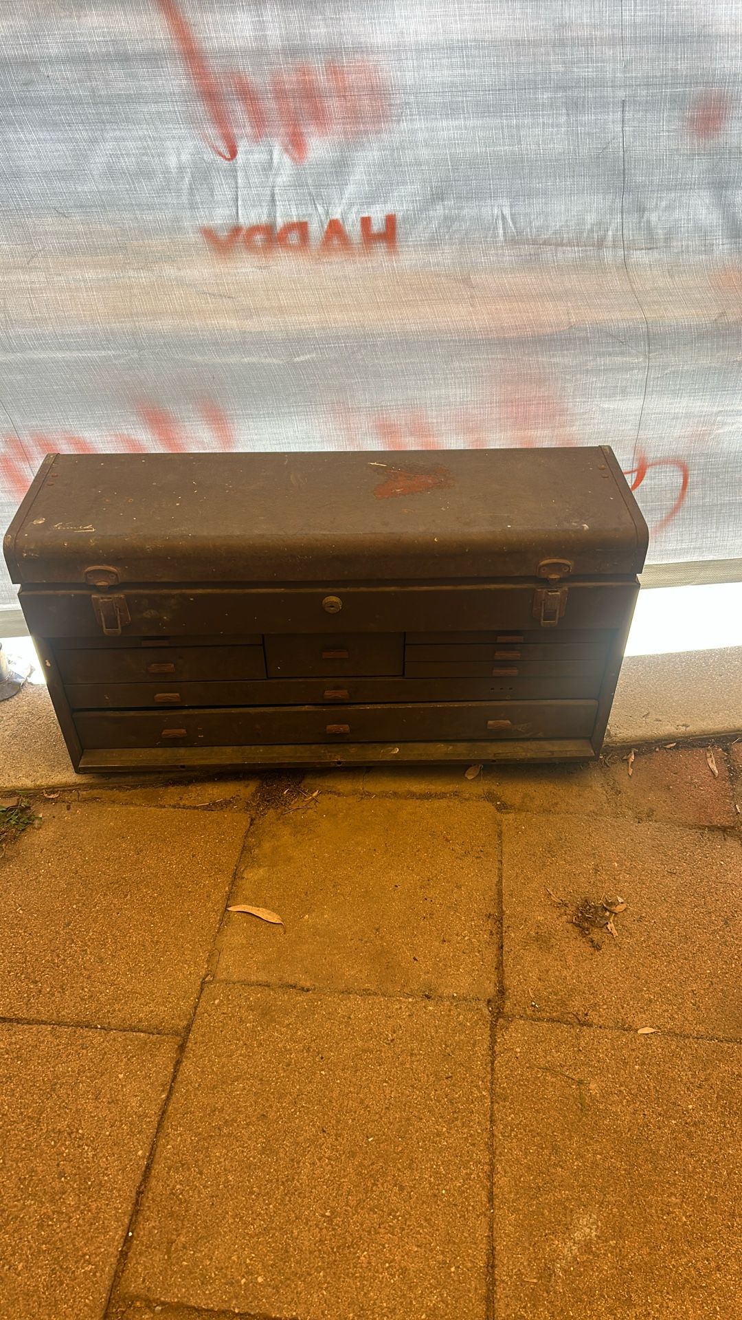 Kennedy took box in good condition. Drawers open and close easily, the top opens up. Has strong handles on the side for carrying.