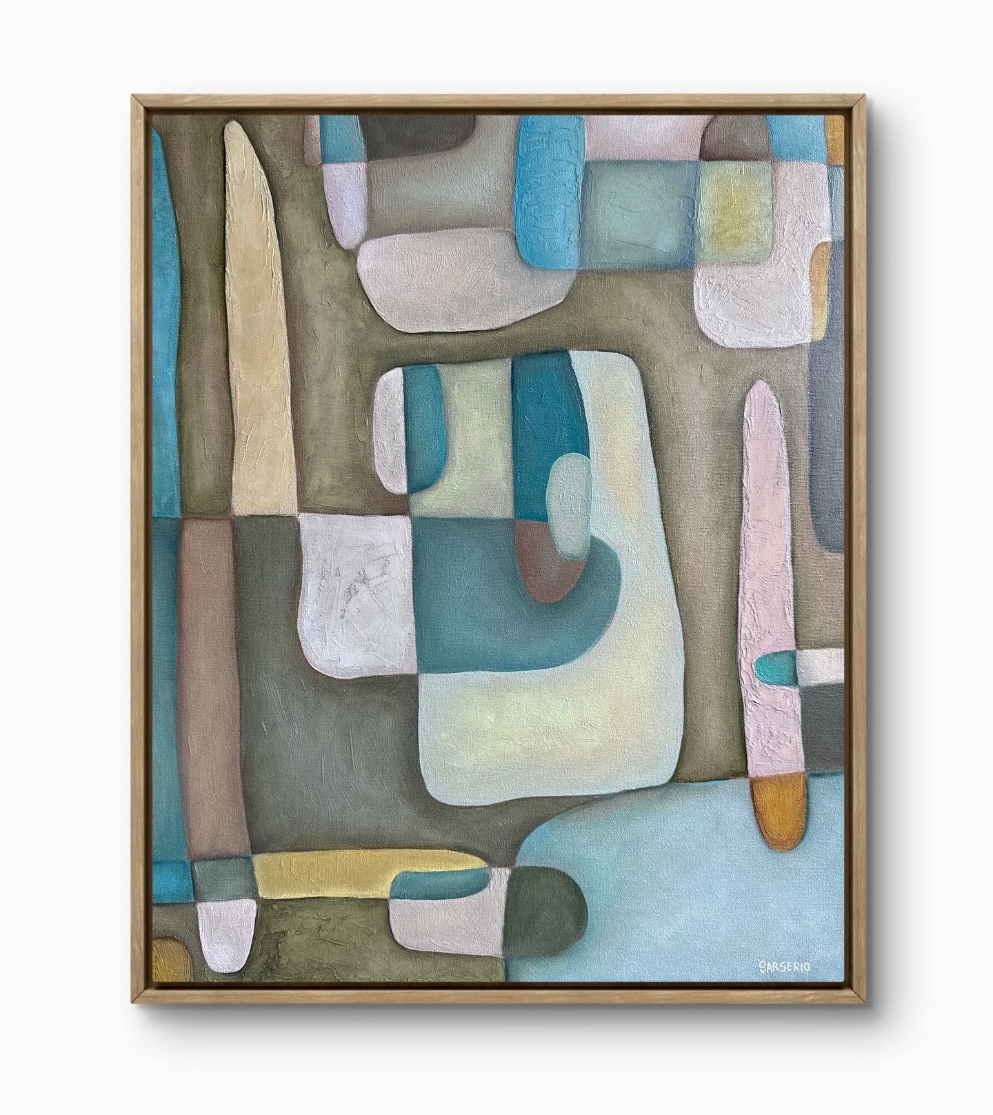 Abstract oil painting for sale. Title: Fragmentos de quietud. Dimensions: 40x50 cm. Medium: Oil over stretched canvas. Signed and dated by artist. Comes with letter of authenticity. Shipping worldwide for an extra fee. Unframed but ready to hang.