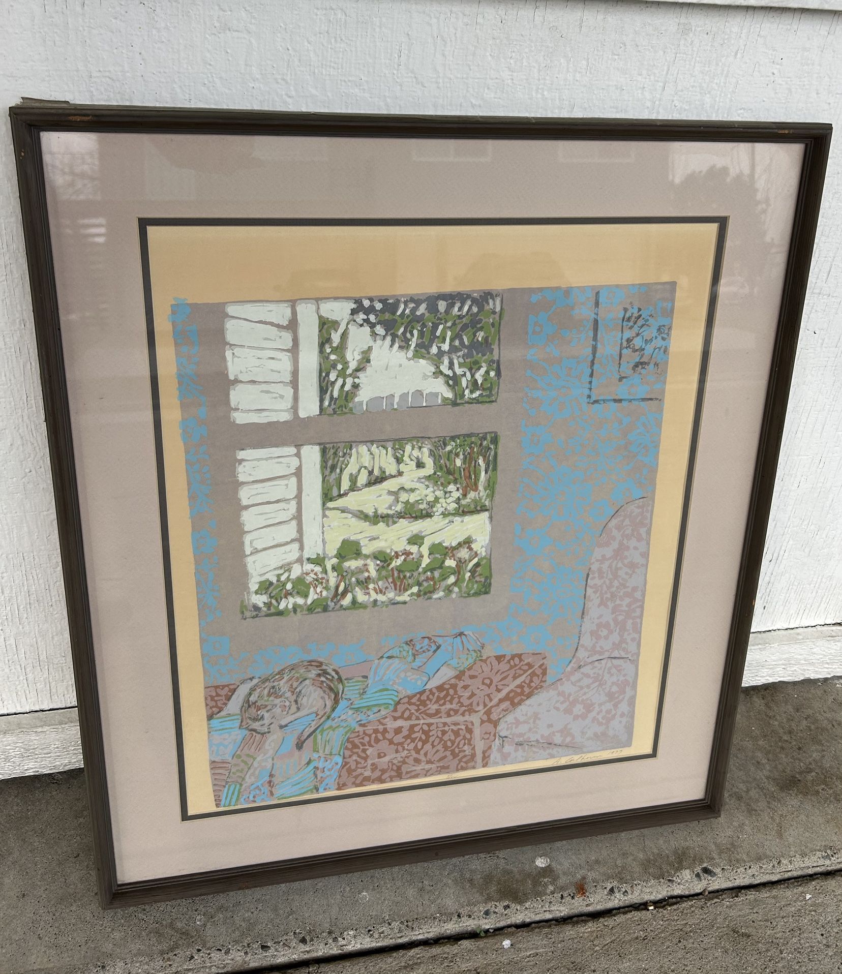 A. Calhoun Signed 1977 Framed Serigraph β Cat by Window β 26.5βx23.5β Art