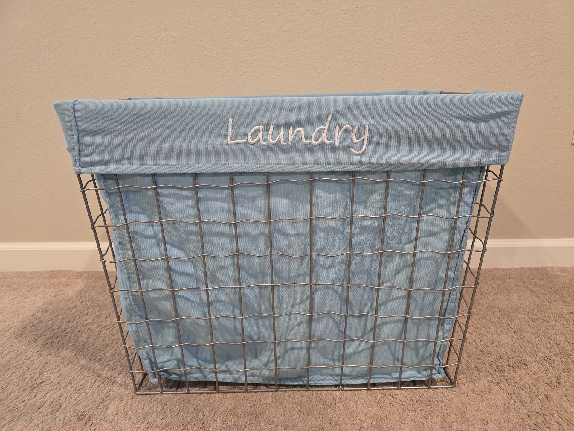 Great sturdy laundry hamper. 22x15x18 Cover has been washed. Nice and clean. Light blue/turquoise color.