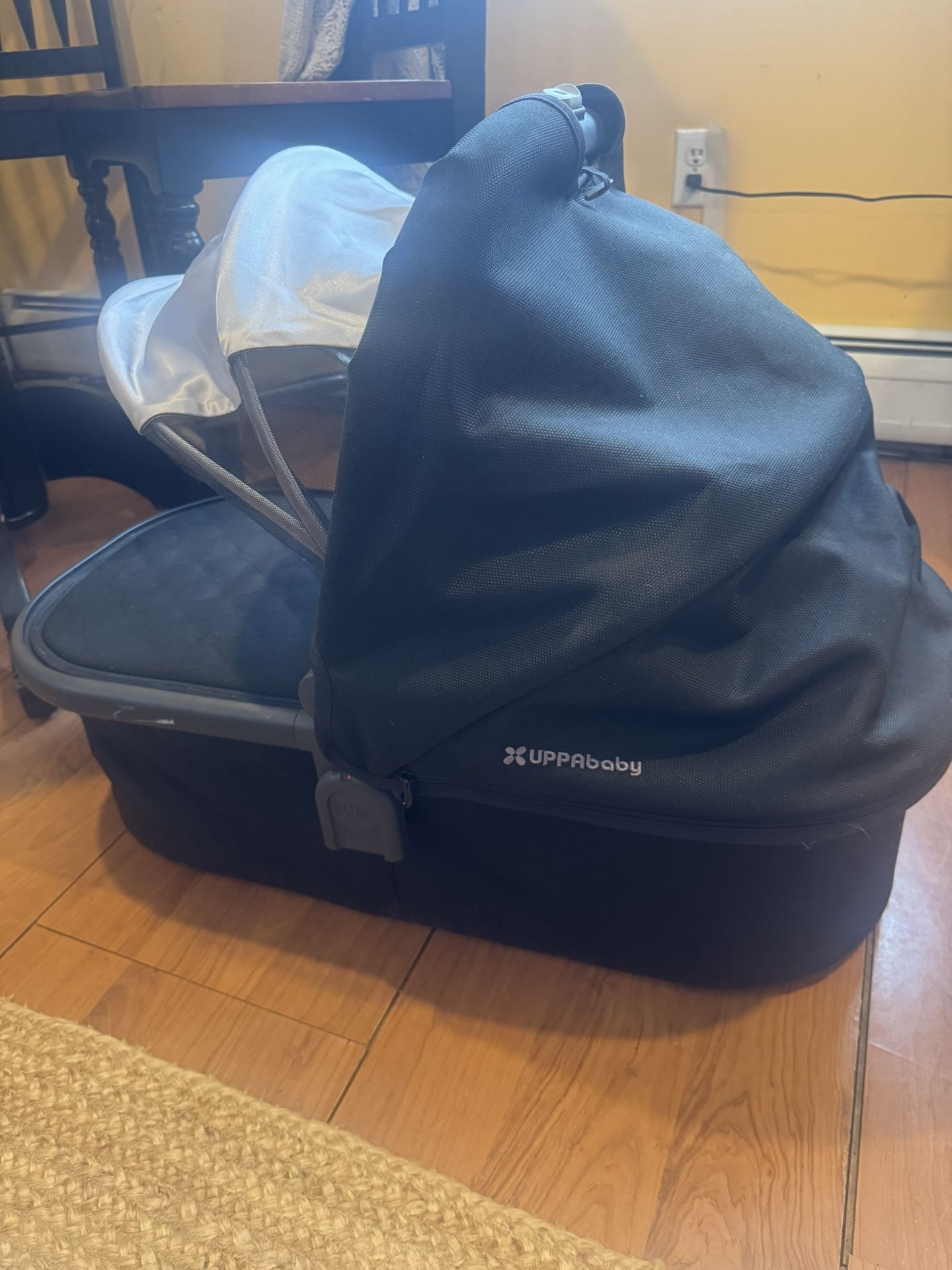 High end Uppa Baby bassinet. Compatible with stroller and stands. Barely used, like new. Black color. Used only a few times!!