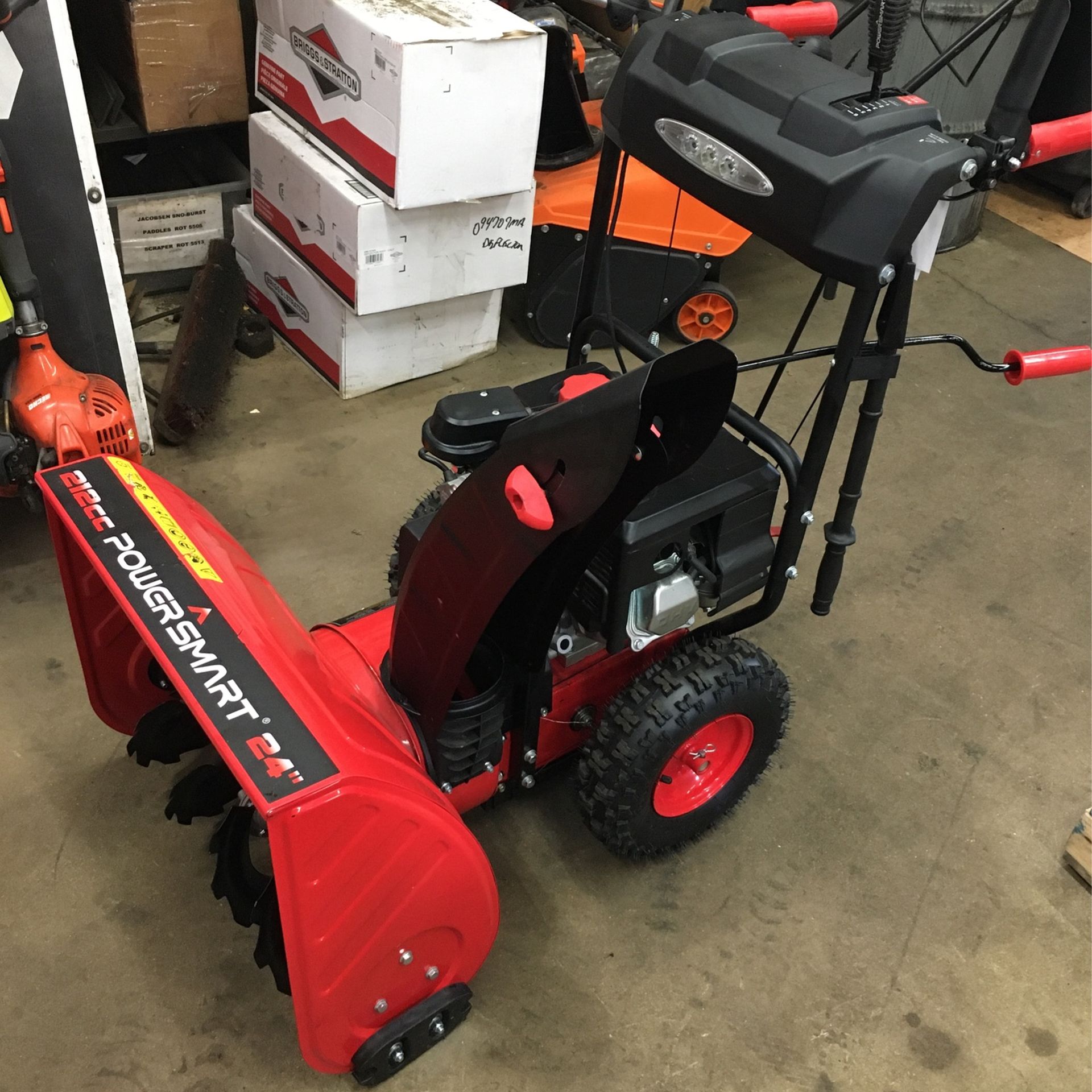 Like new 24 inch Powersmart snowblower. Electric start plus head light and heated grips