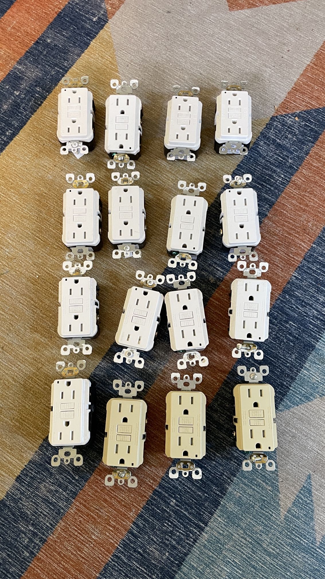 16 pretty much brand new GFCI outlets. They were installed in our home right before we bought it and we immediately replaced them. They have paint on the screw holes from the pervious owner, but are essentially brand new otherwise. Selling all 16 together.