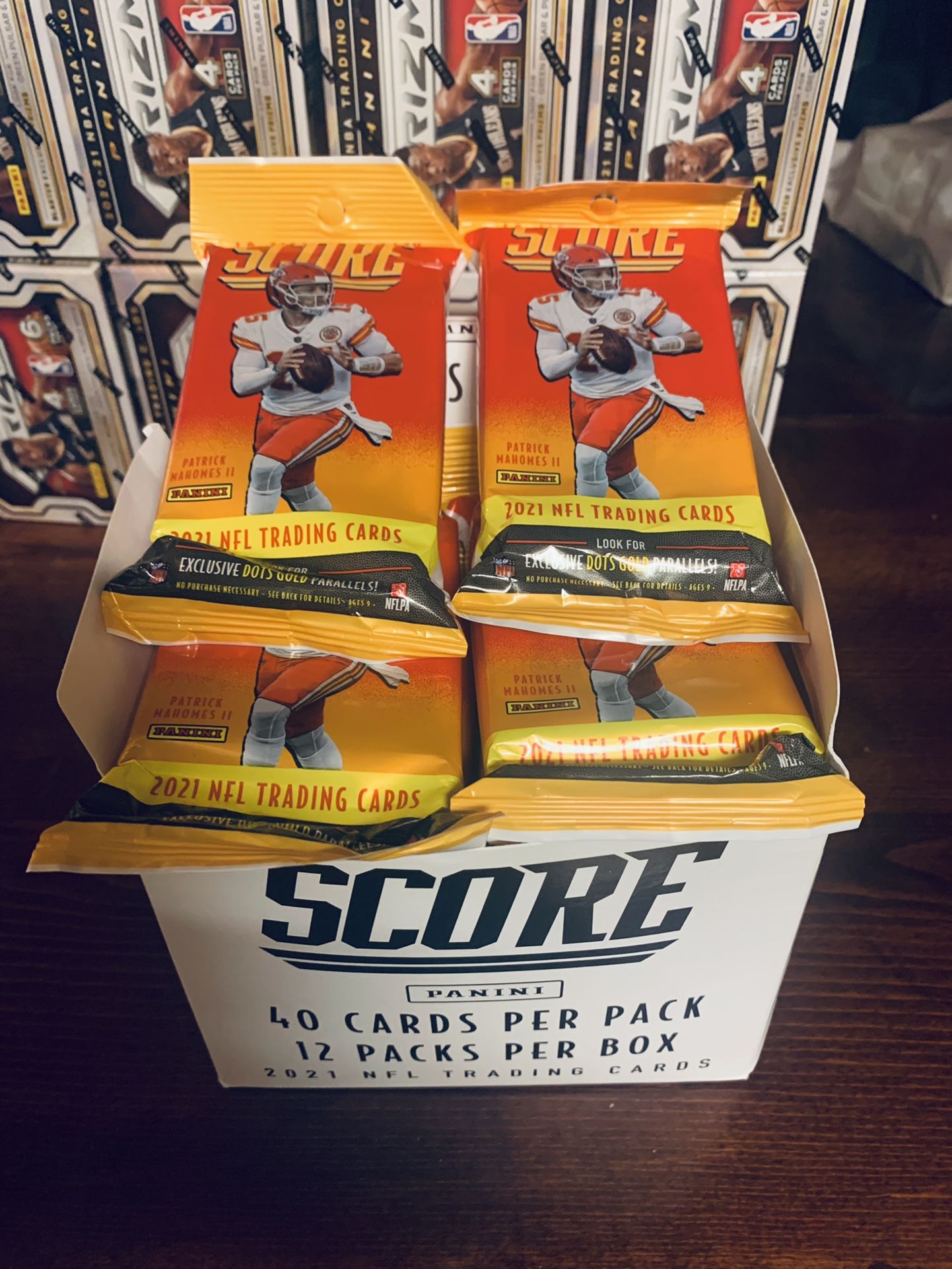 Hey I have fifteen 2021 NFL Panini Score Cello Fat Packs .40 cards each pack . Factory Sealed. Im looking to $160 for all 15 packs. I could sell packs separate just message with questions. NFL NBA prizm trading cards football Patrick Mahomes booster mega box Tom Brady Trevor Lawrence