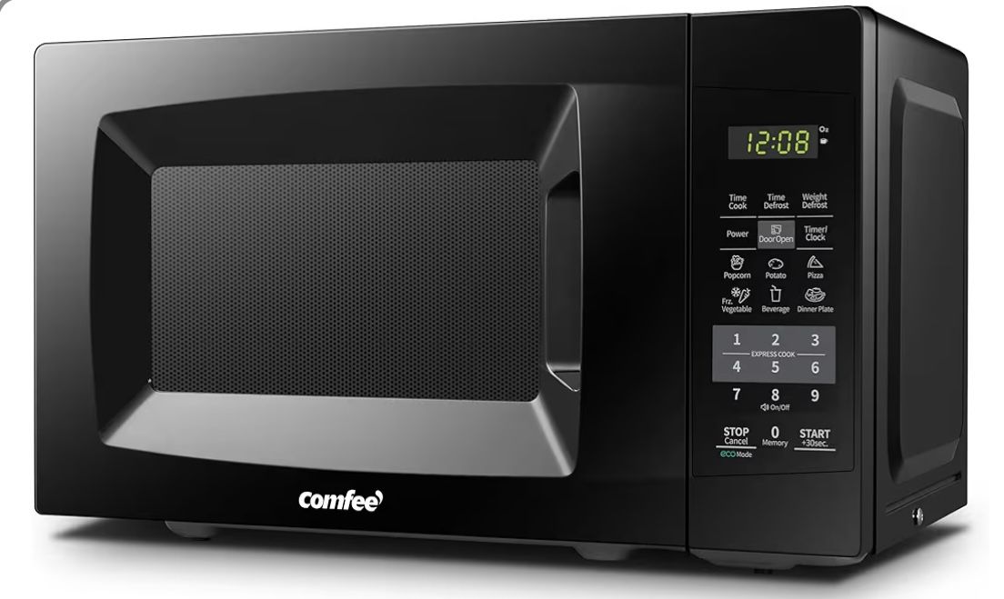 Like new countertop microwave oven with Sound On/Off, ECO Mode and Easy One-Touch Buttons, 0.7cu.ft, 700W, Black.