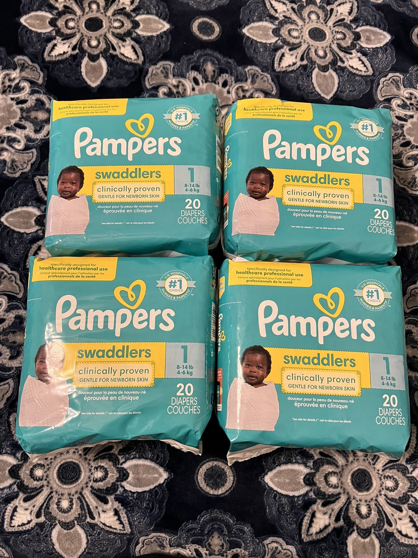 4 packs of 20 diapers each pack a total of 80 diapers