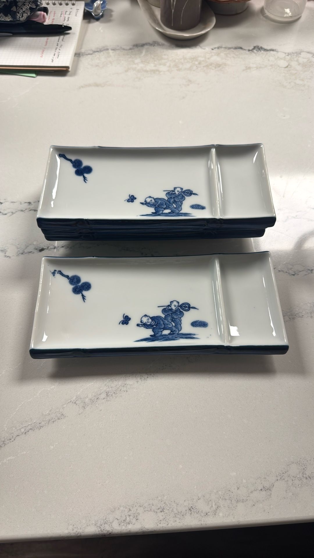 Set of 8 Small Two-Compartment Ceramic Plate