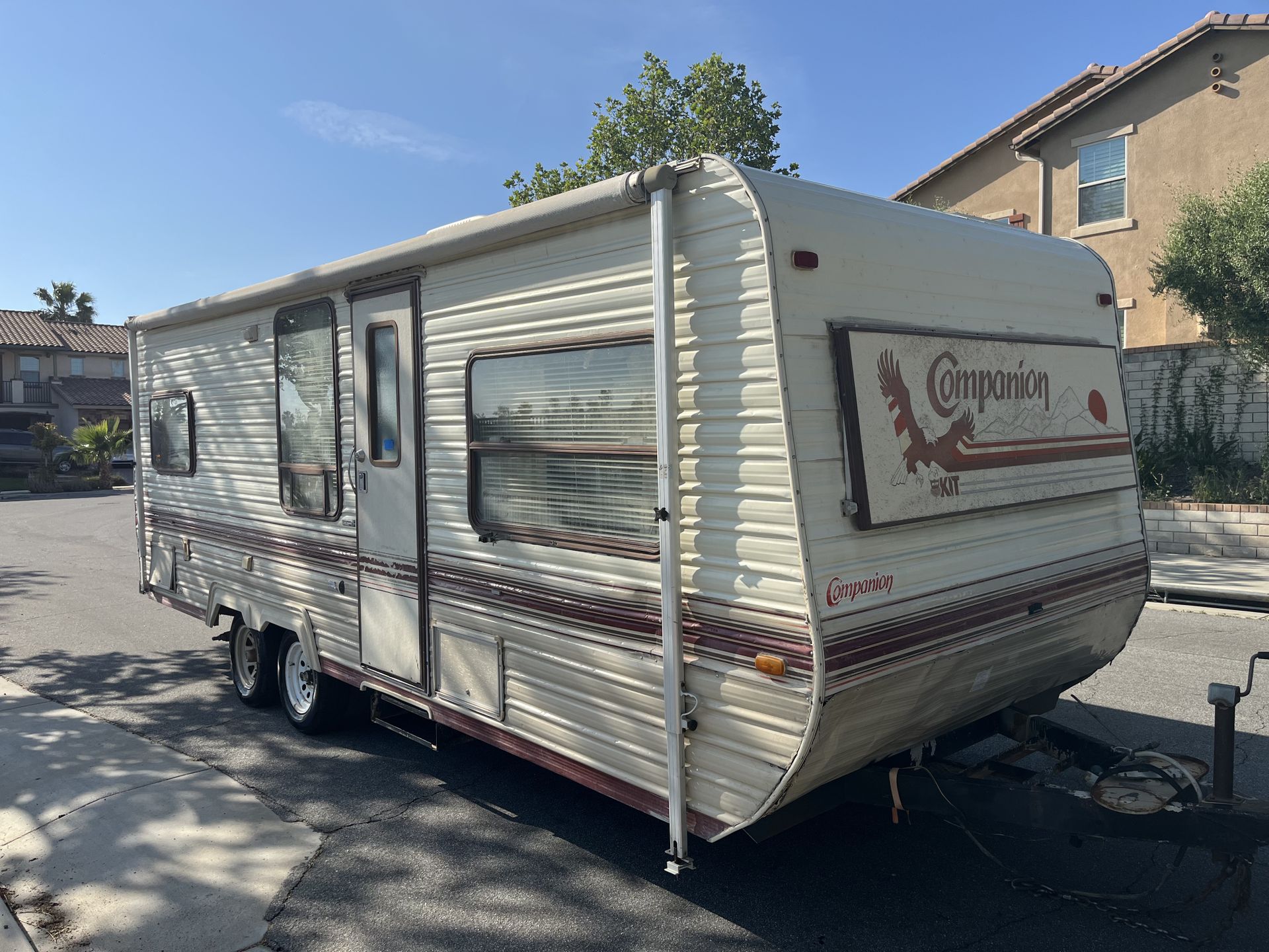 Selling my 1990 companion travel trailer 19 foot ice cold AC 🥶 All appliances work like new Great for Cappin are a place to stay  Good tires Clean title, selling with a duplicate from DMV Bill of sale as well … All hoses and tanks have been completely flushed out and sanitize Still has original radio works great Queen size mattress as well as dining room and living room turns into a full size bed Plates will be coming with me since they are custom handicap plates, First come, first serve everything works great no soft spots are leaks Can also be delivered for a fee  $3750