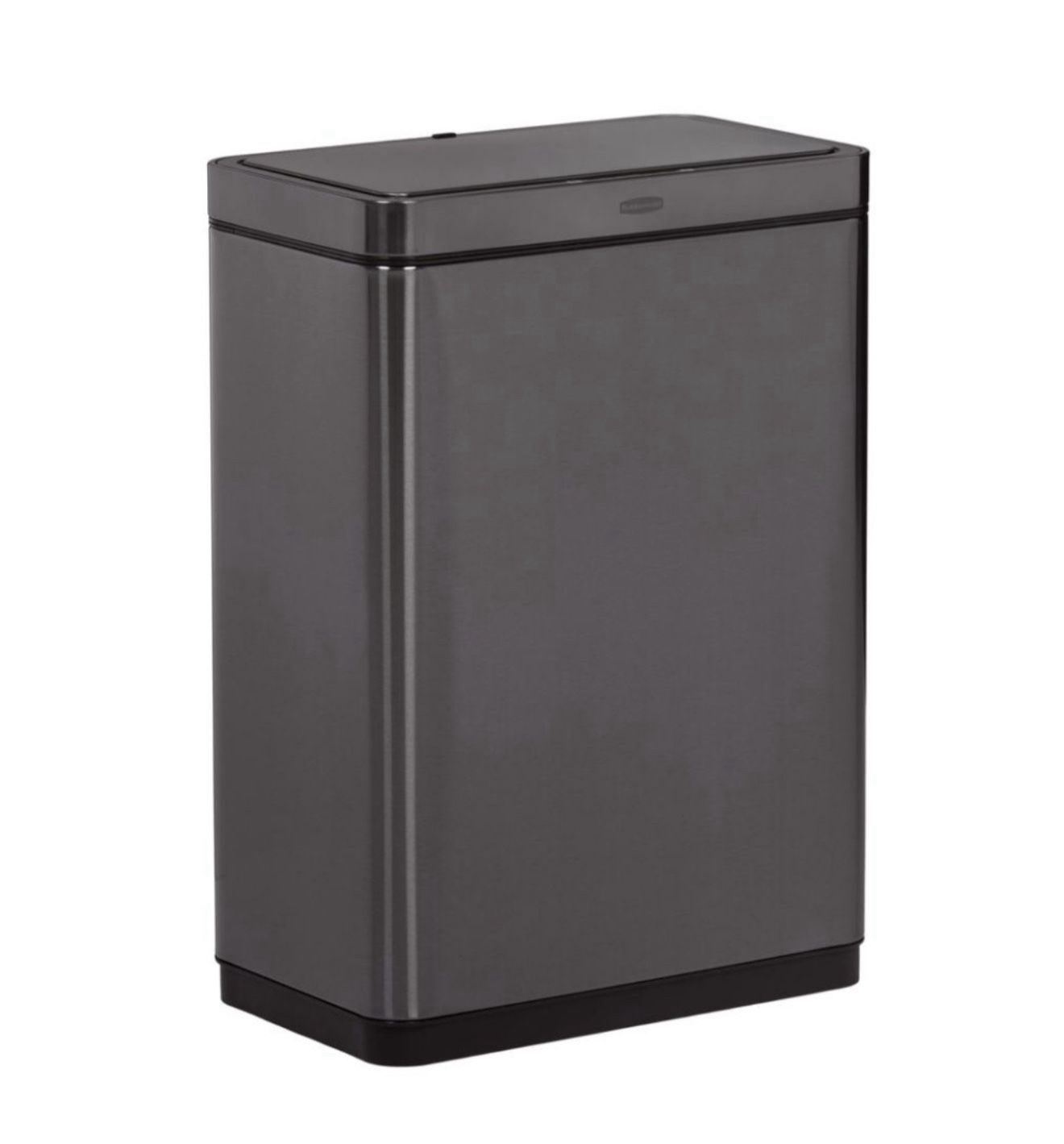 Rubbermaid Elite Stainless Steel Sensor Trash Can For Home And Kitchen Batteries Included 12.4 Gallon Charcoal For Home/Kitchen/Hotel/Lobby/Office