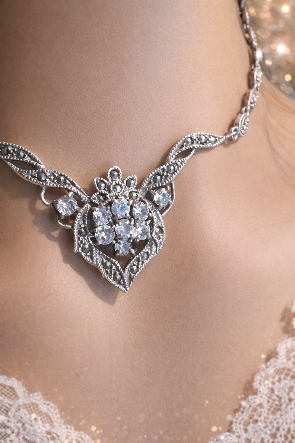 Vintage Victorian style diamond necklace Silver 925 stamp. $500