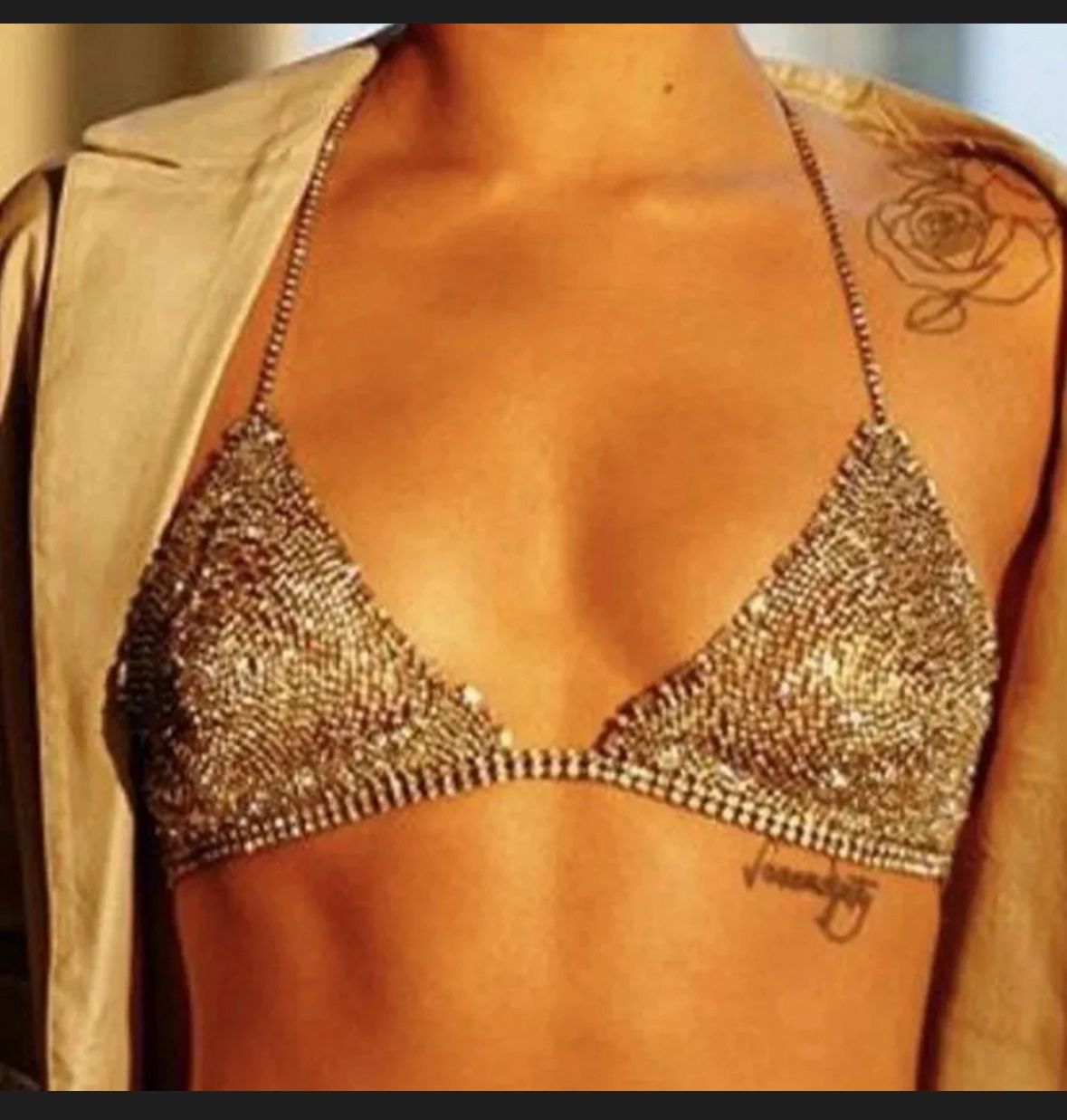 Tops for Women Crystal Diamonds Boob Bra Party Club Metal Strap