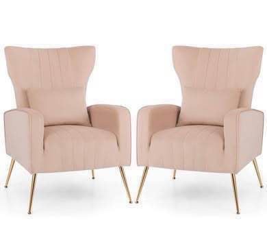 2 For $180 New Velvet Accent Chair with Lumbar Pillow Upholstered Tufted Wingback Arm Chair