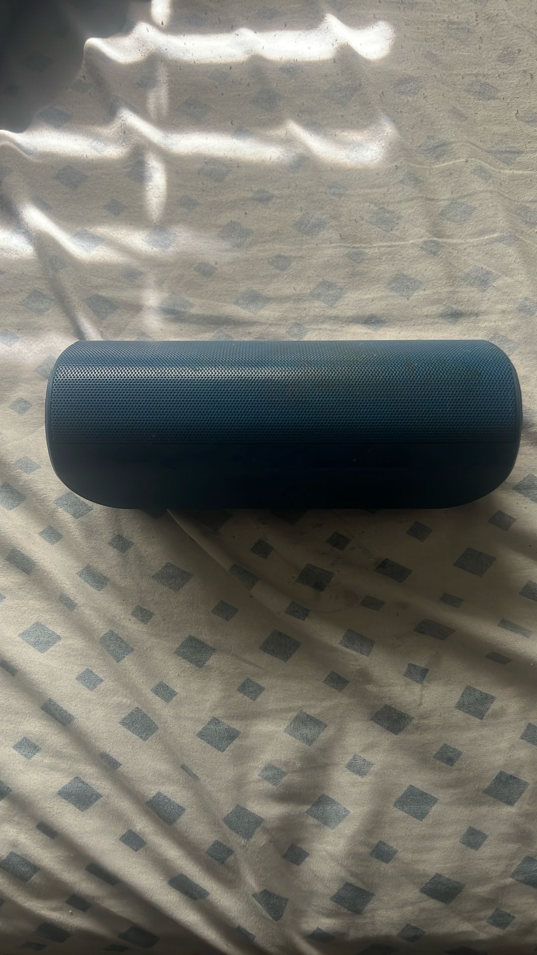 Used blue Insignia Bluetooth speaker in good working condition. Has a small brown stain on the side (pictured), but sound quality is still strong and reliable. Pairs easily with any Bluetooth-enabled device. Great for home, travel, or outdoor use. NO REFUNDS CASH OR ZELLE ONLY PICKUP ONLY