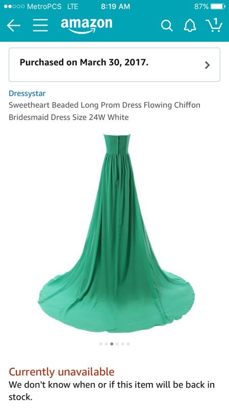 Size 24 white dress order it for my Second dress but it was too small paid 120 will sale for 50