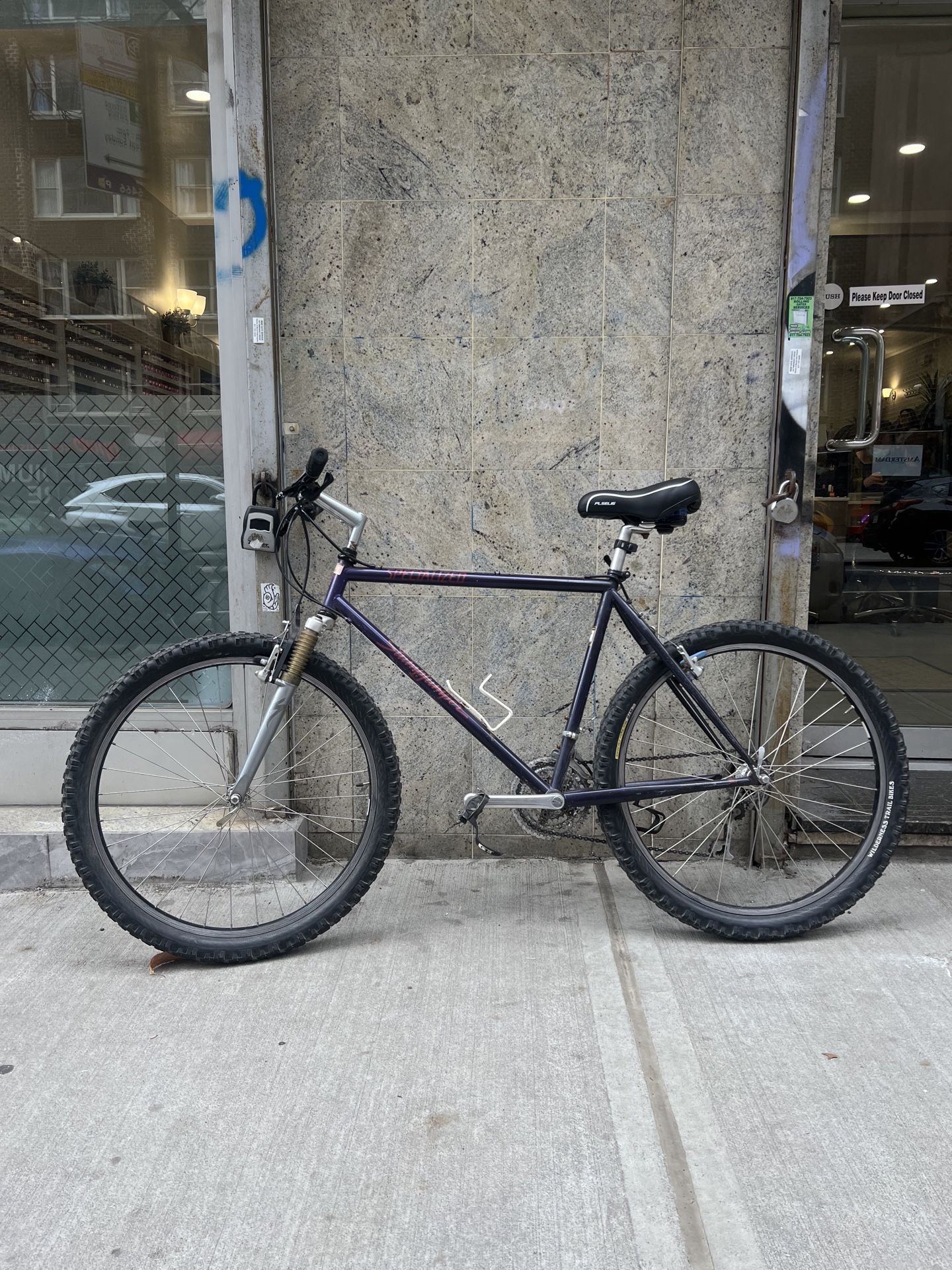 Classic Specialized Stumpjumper from the early 90s - iconic teal colorway. Steel frame, rigid fork, cantilever brakes. Rides super smooth, frame and drivetrain are in great shape. Grips are slightly worn at the edges (see pic) - easy $10 fix. Perfect city bike - light, fast, and way cooler than any modern commuter. Comes with: - Ergonomic saddle (upgraded, super comfy) - U-lock - 2 spare tubes - Floor pump Cash only, pickup near Washington Square Park. Can meet today. First come first served - this won't last.