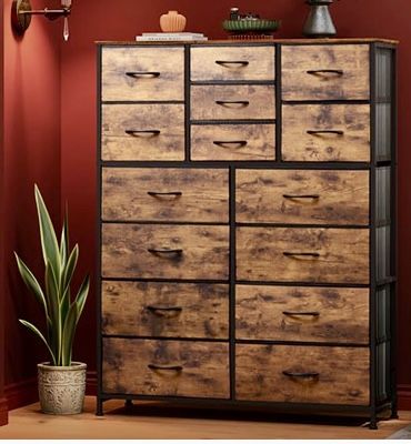 Brand new, fully assembled dresser. I purchased the wrong one by mistake. GALAXHERO Tall Console Table with 15 Fabric Drawers, Entryway Table with Storage, Tall Storage Organizer with Wood Top, Steel Frame for Living Room, Hallway, Office, or Bedroom in Rustic Brown
