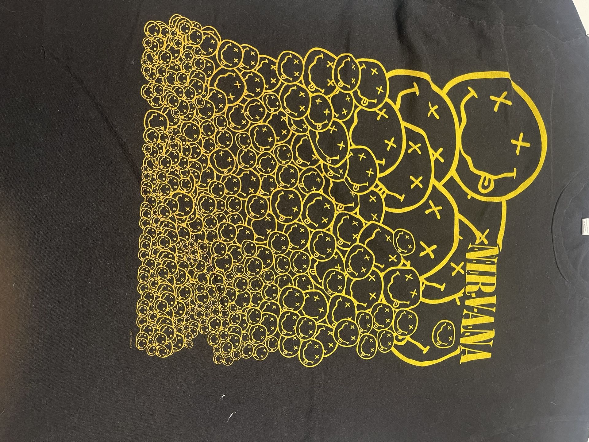 Nirvana Logo T-shirt Men Adults Black Yellow Short Sleeve Music Band Smiley