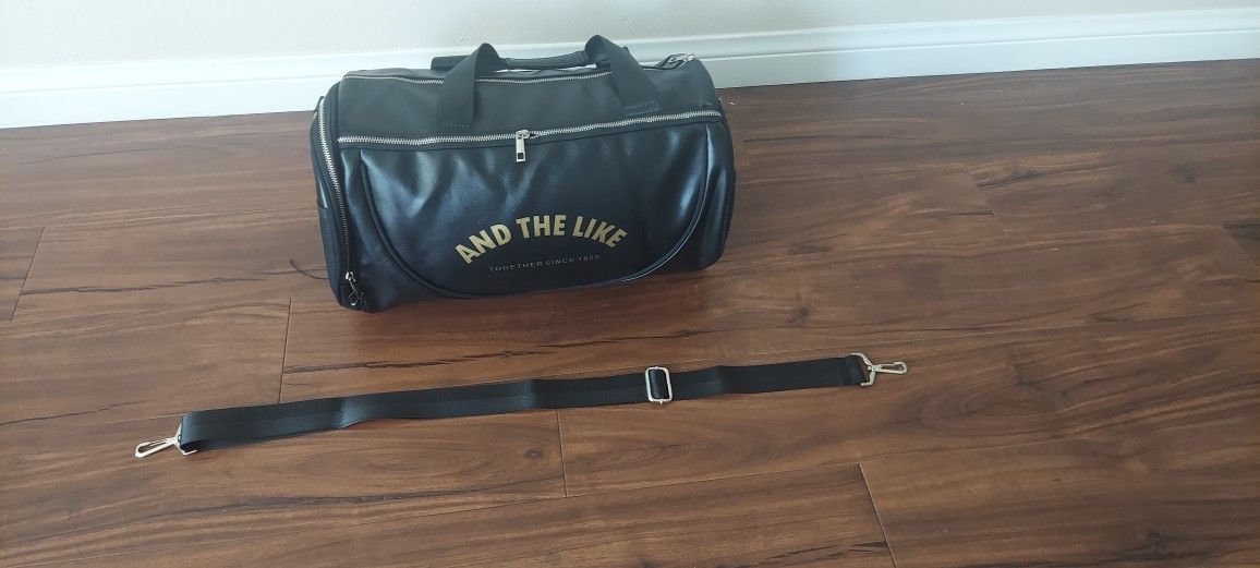 New And The Like sport bag mens black faux leather multi compartments Gym or carry on bag