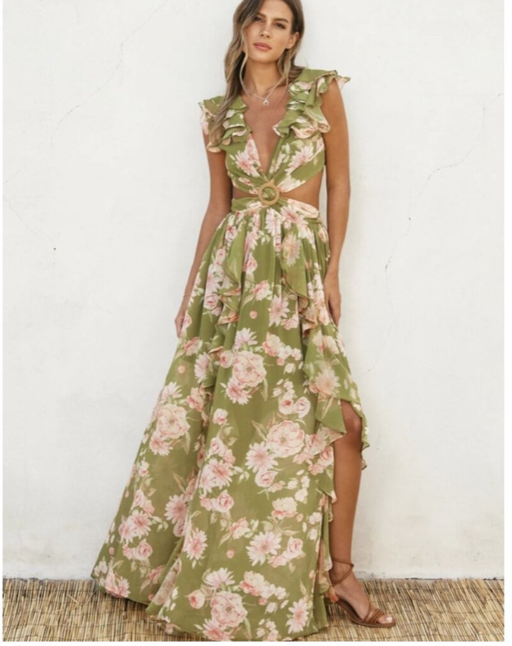 Dress Forum Size Medium Green Floral Maxi Dress With Cut Outs