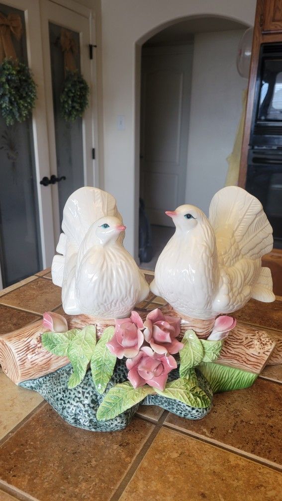 Two White Doves Figurine 10 1/2 Inches Tall Great For A Centerpiece For A Bridal Shower Or Centerpiece Bride And Groom Table $30.00
