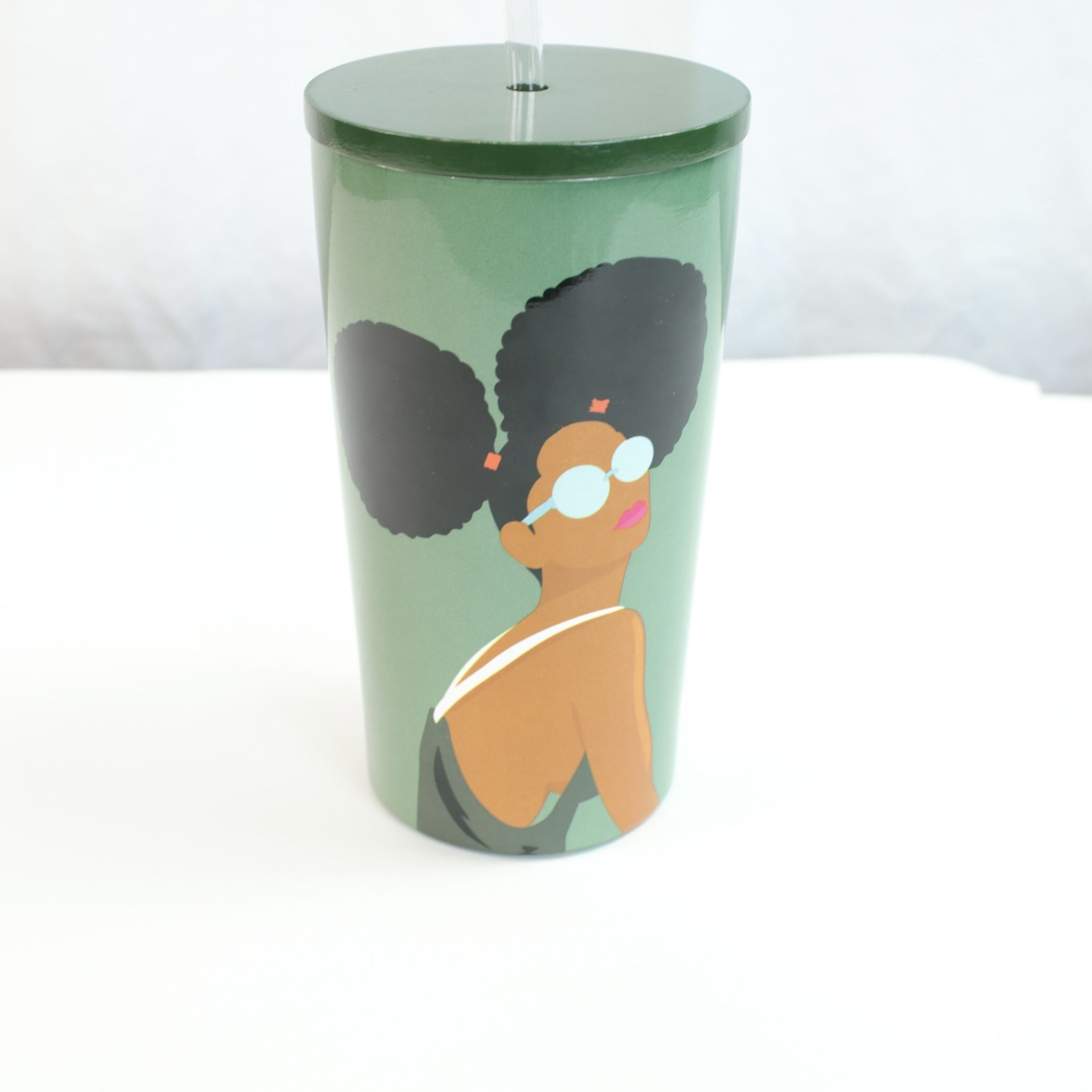 Room Essentials Green Stainless Steel Tumbler Travel Mug w/ Black Woman Graphic PERFECT for the summer! Send your best offer! NEW condition and never used! Holds 17.5 FL OZ. Includes Lid, Straw & Tumbler.