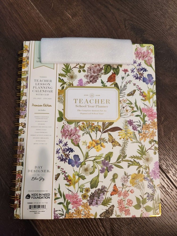 New Day Designer 8.5"x11" 2025-2026 Weekly/Monthly Wirebound Teacher Lesson Planner Clipboard Hardcover Butterfly Garden