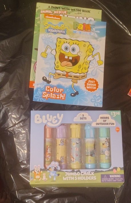 Craft supplies for painting and clay, books, stickers, bluey coloring sheets, side walk chalk and coloring books will sell separate or all together message me for prices.