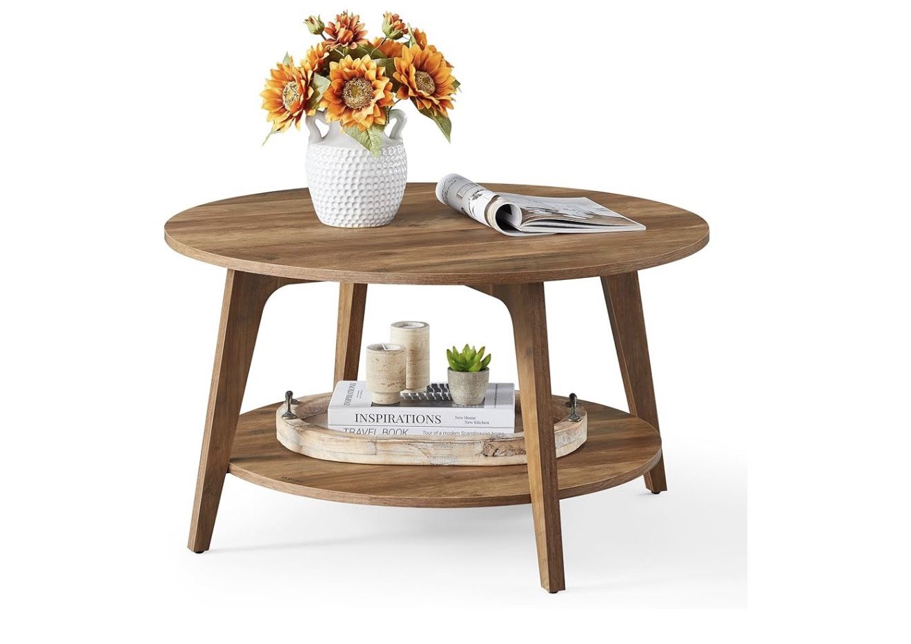 Round Coffee Table, 2-Tier Center Table with Storage, Tapered Legs, Curved Transitions, 31.5 Dia. x 17.7 H Inches, Easy Assembly, for Living Room, Honey Brown ULCT243K41