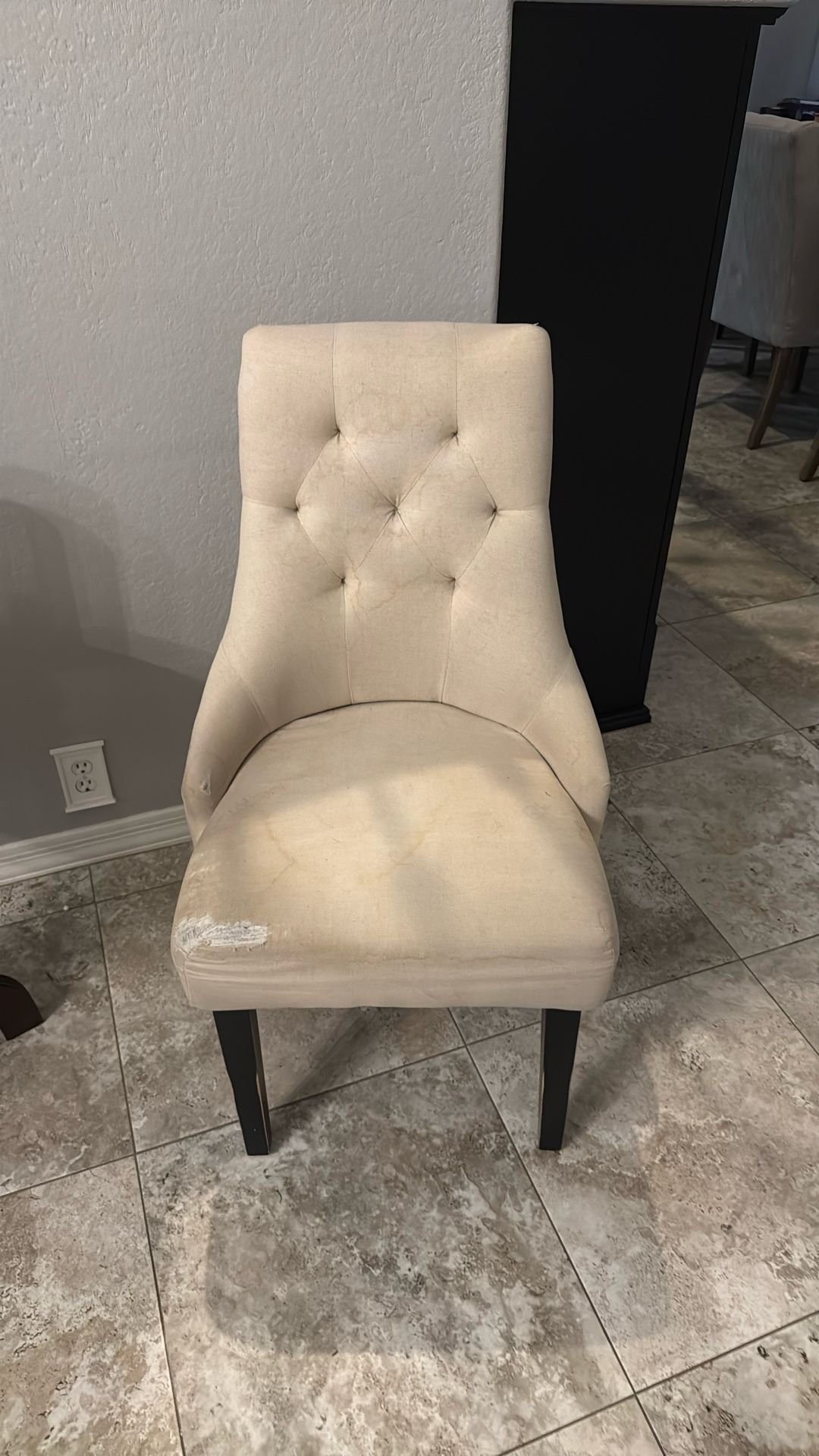 Really pretty chair from cost plus world market. In need of new upholstery or fabric. Otherwise sturdy and works fine. Kyrene and Ray