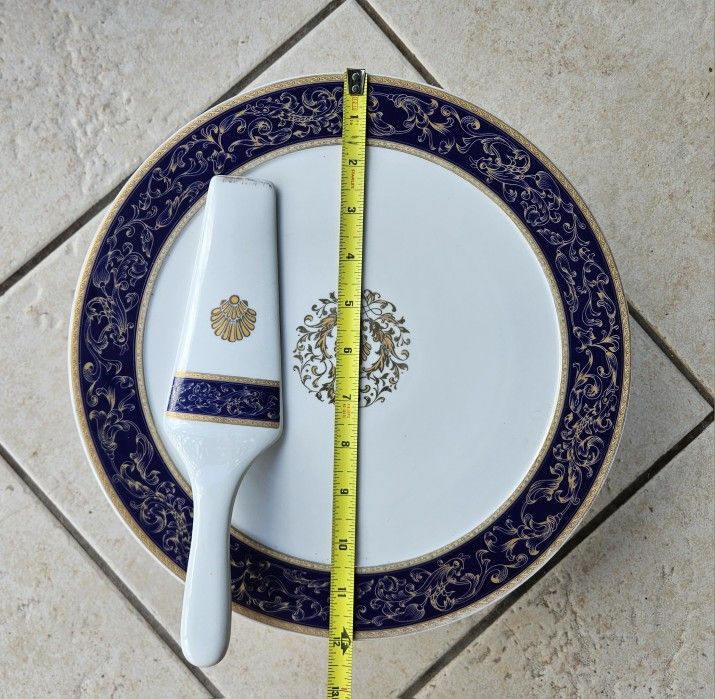 Ceremic Cake stand with server set for sale. It's in great condition. Please refer images for dimensions.