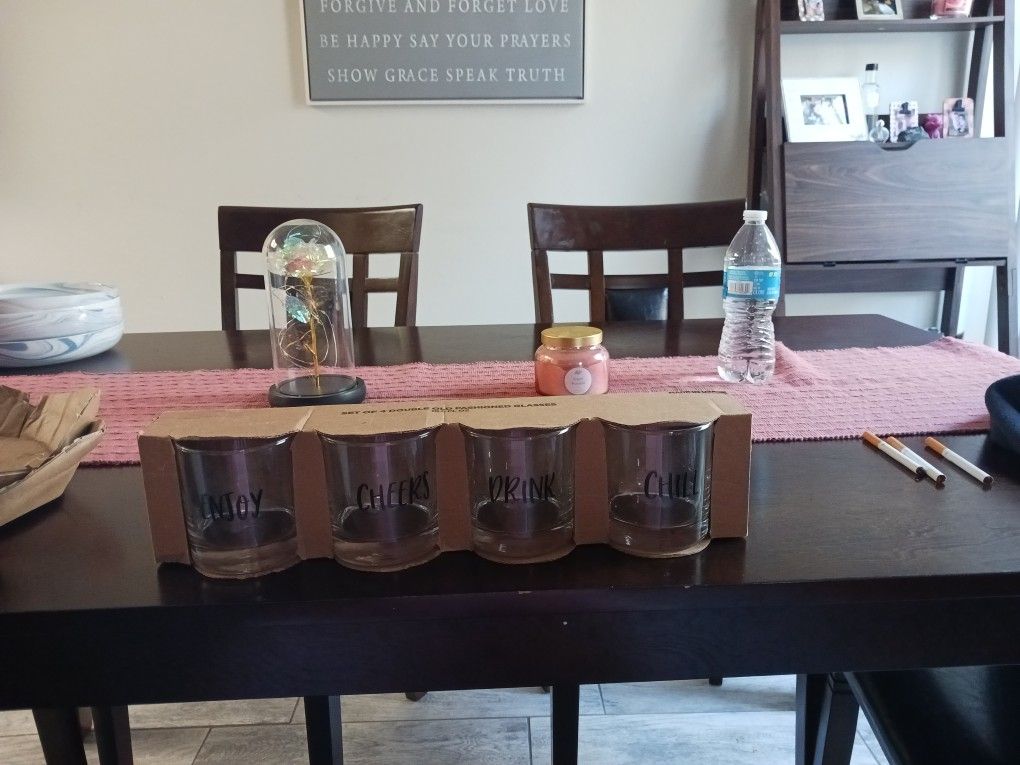 Enjoy, drink, chill and cheers drinking glasses. Brand new