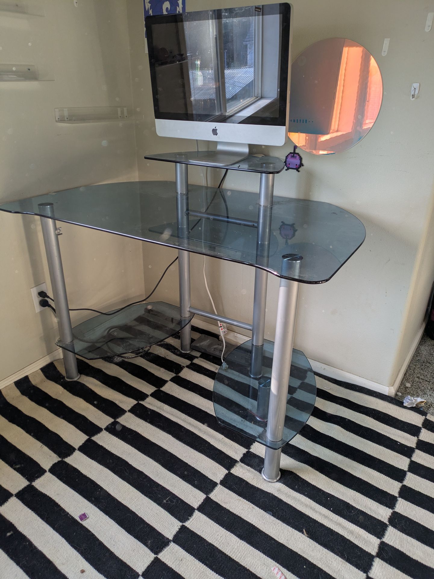 Modern Glass Desk very classy. Very sturdy. Disassembled for easy transportation pick up only.