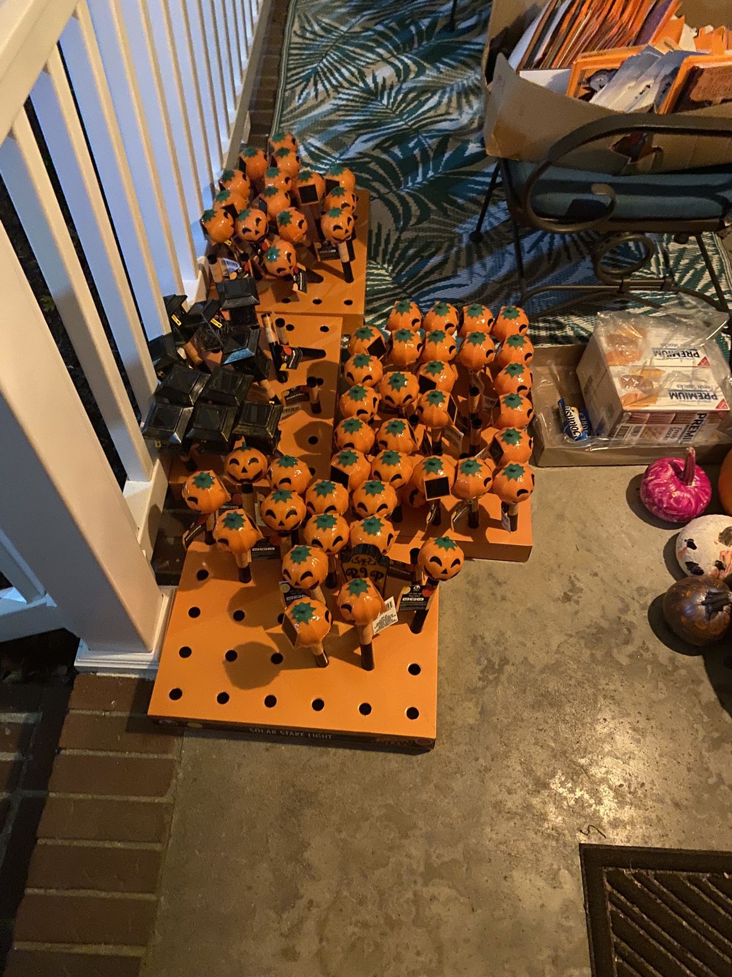 I’m selling all the solar lights in this picture the pumpkins and there are a few other different kinds. I have about 100 something Halloween cards. I didn’t pay a whole lot for this so make me a offer or trade me something it doesn’t matter.
