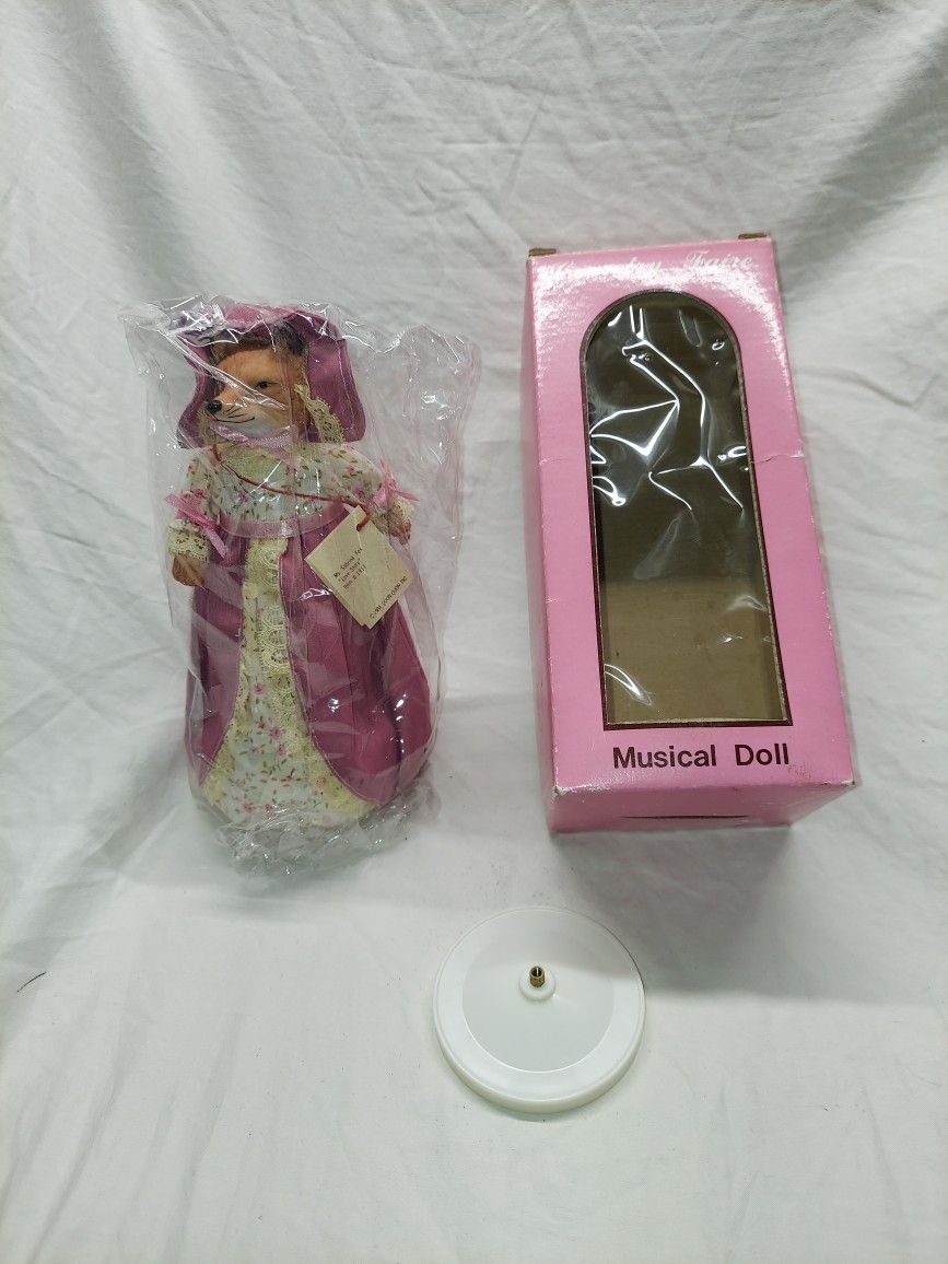 This Quon Quon Ms. Sabrina Fox Musical Doll is a charming addition to any collection. The doll is designed to play the tune of "Love Story" from the Country Faire series. Made in Taiwan, this 1984 vintage doll is a wonderful find for collectors of vintage items. The doll is not handmade and comes with its original box. Unopened bag still sealed. Box is banged up. Took it out to photograph