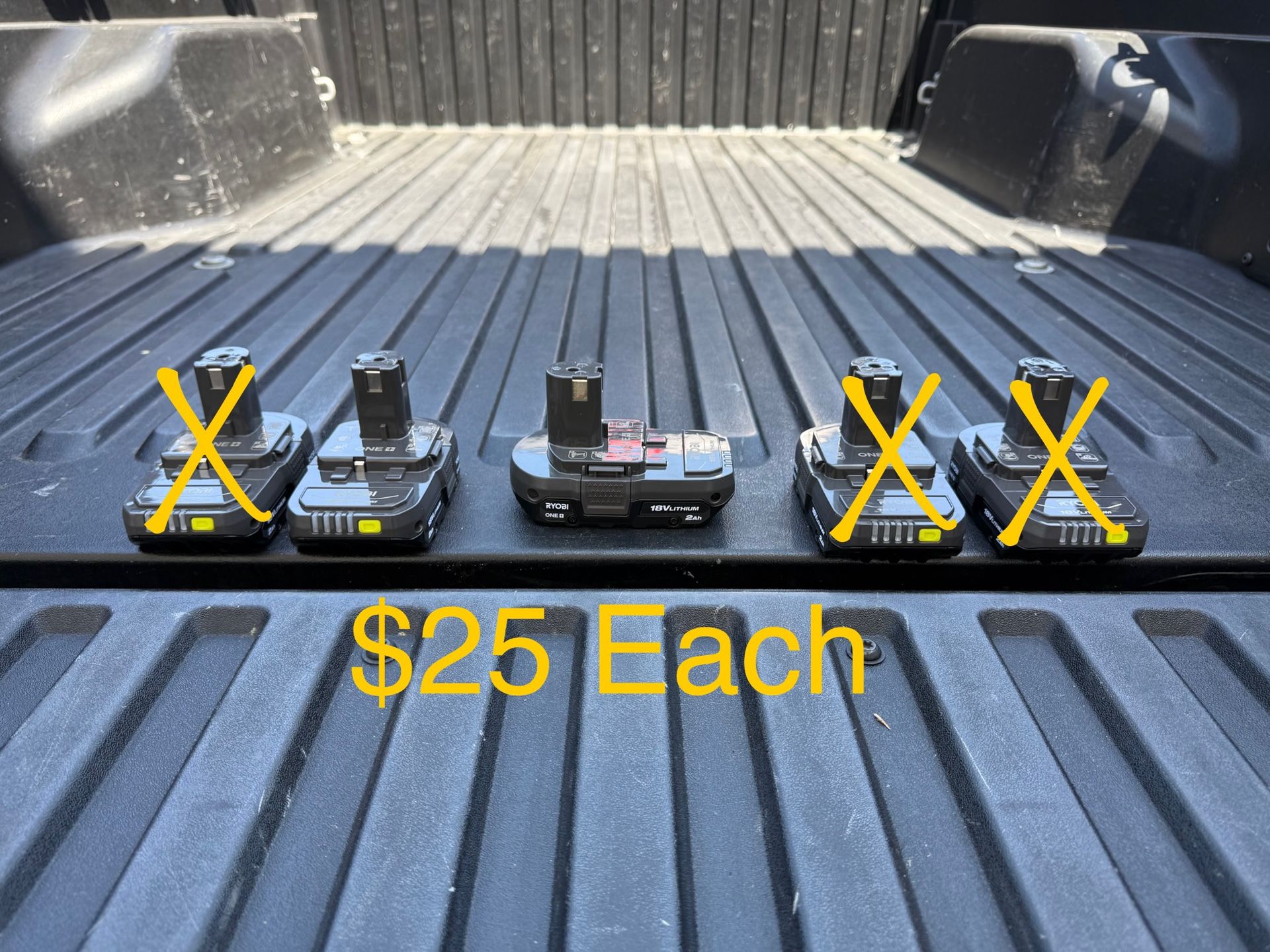 RYOBI ONE+ 18V Lithium-Ion 2.0 Ah Battery **$25 Each, 2 Available**