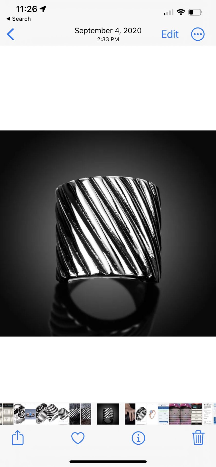 Stainless steel mens ring size 8